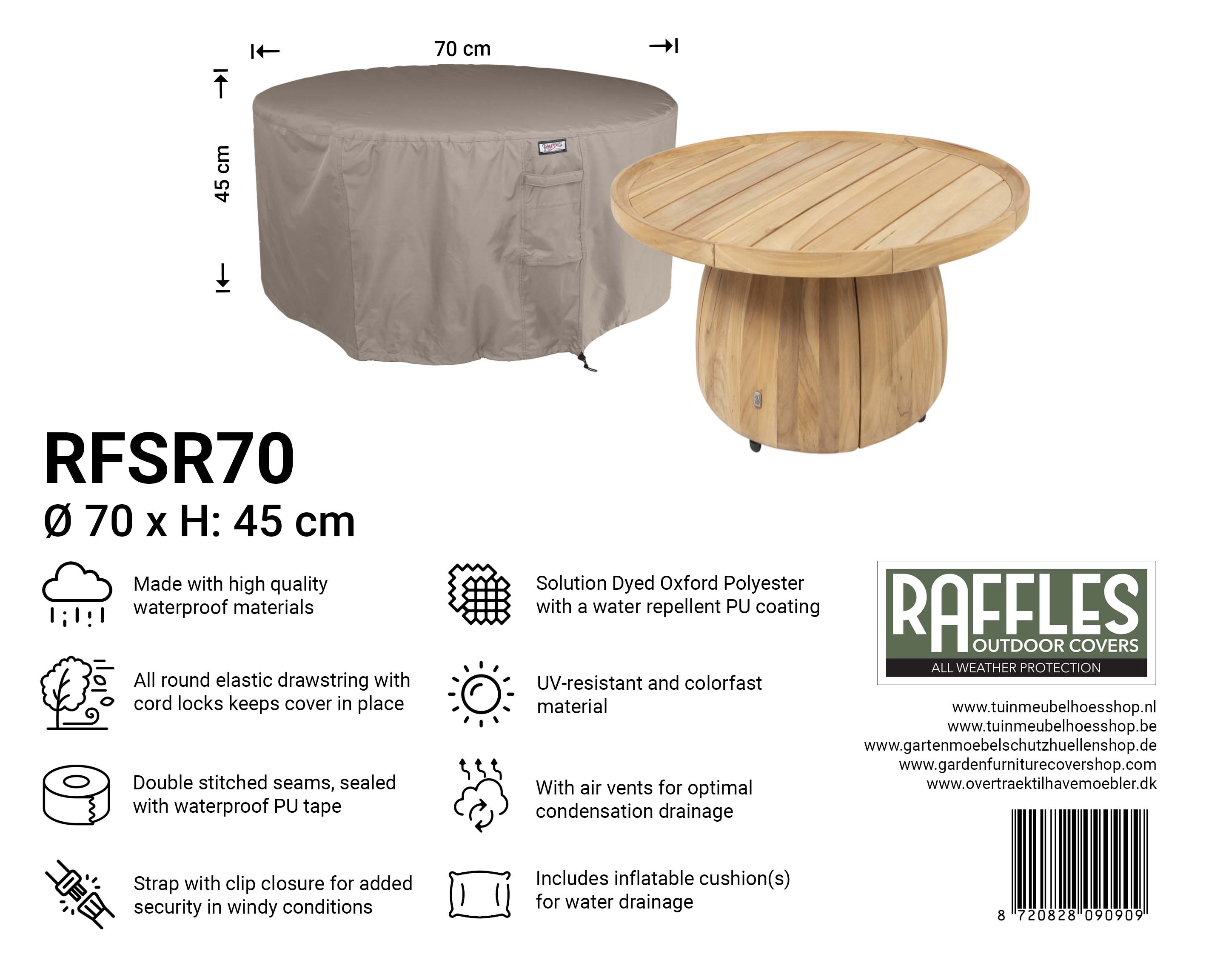 Auch das kleinste Möbelstück in Ihrem Garten verdient den besten Schutz! Die RFSR70 Schutzhülle wurde speziell für runde Loungetische mit einem Durchmesser von 70 cm entwickelt, eignet sich aber auch perfekt für runde Hocker, Lampen, Feuerschalen, Brenner und Terrassenheizstrahler. Dank des robusten Materials und der intelligenten Funktionen bietet diese Hülle optimalen Schutz vor allen Witterungsbedingungen.