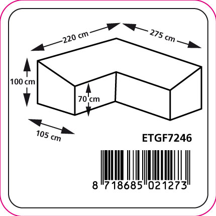 | Produkttyp: | Schutzhülle für L-Form-Dining-Ecklounge mit ungleichen Seiten |