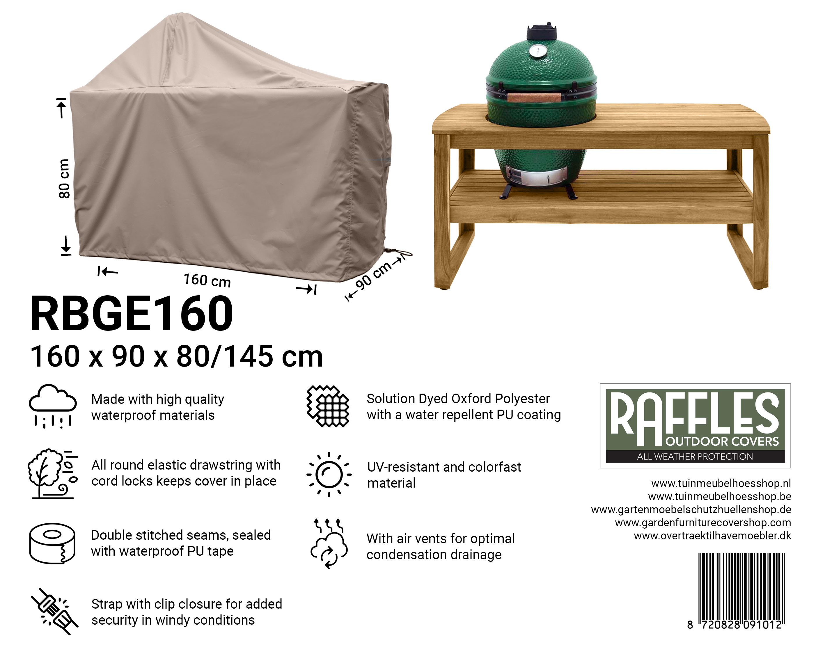 Spezifikationen Raffles Covers RBGE-Serie – Kamado-Schutzhülle mit Tisch