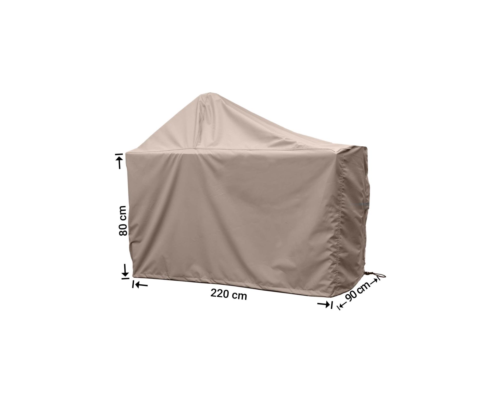 Die verschiedenen RBGE-Modelle passen zu gängigen Kamado-Tischen und -Frames sowie zu geraden Außenküchen. Es gibt Ausführungen für Aufbauten von ca. 140 × 80 cm bis 220 × 90 cm, darunter Zwischengrößen um 160 × 90, 170 × 90, 180 × 90 und 200 × 90 cm. Die Hülle fällt von einer höheren Rückseite zur niedrigeren Vorderseite ab (ca. 140 auf 80 cm) und sorgt so für eine klare, professionelle Optik sowie eine gute Wasserableitung.