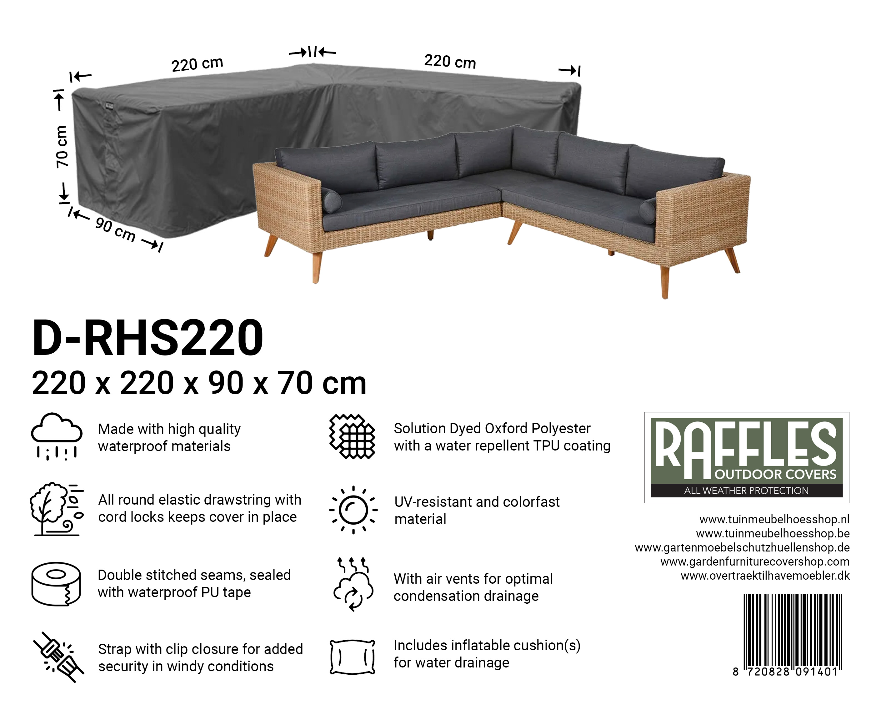 Spezifikationen der Raffles Covers RHS-Serie – Schutzhüllen für Lounge-Ecksofas