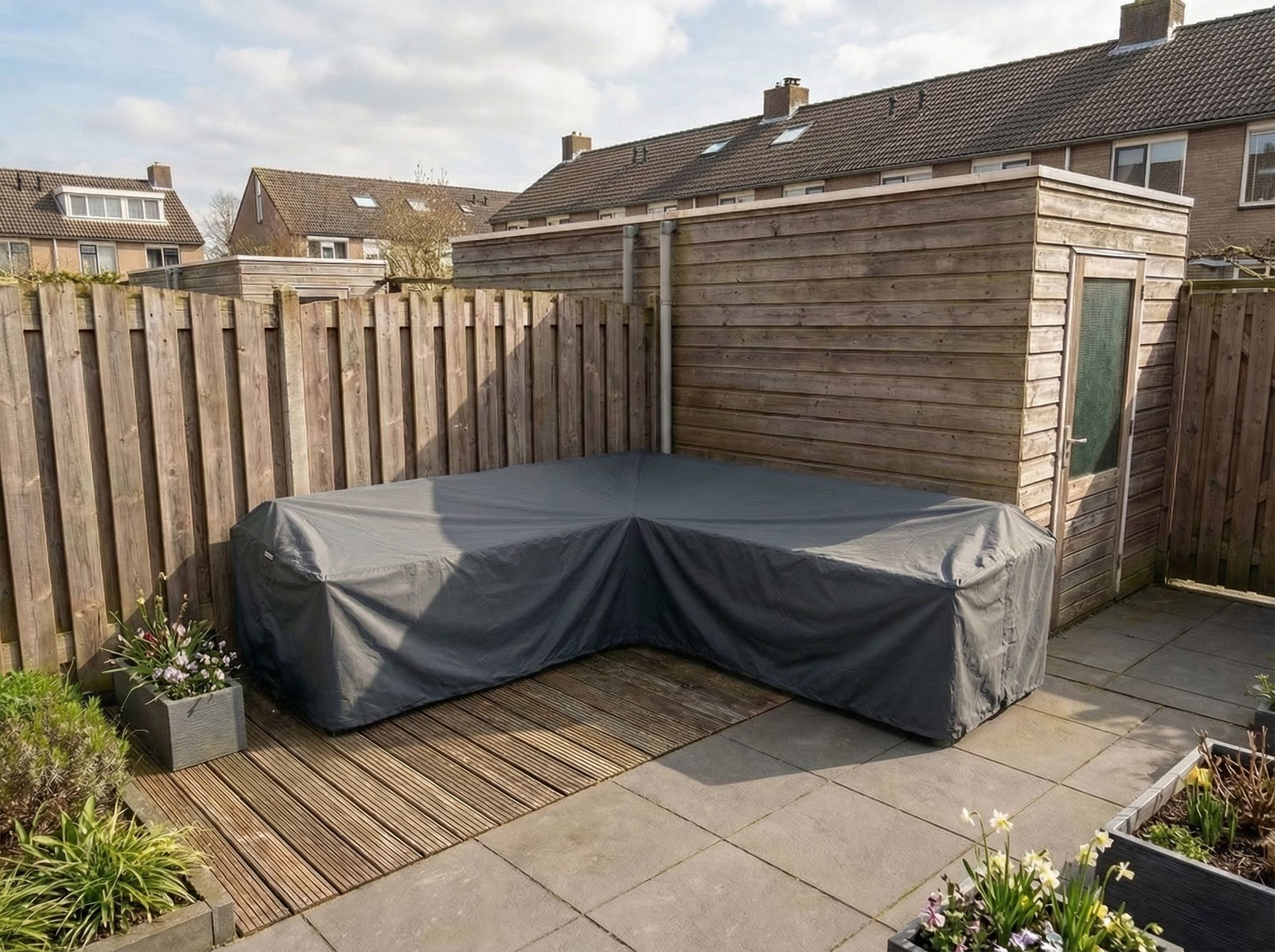 Steht Ihre Eckbank an einem besonders windigen Ort, zum Beispiel auf einer Dachterrasse oder in einem offenen Garten? Kombinieren Sie die Hülle dann mit Sandtaschen, Spanngummis oder Klemmen für zusätzliche Beschwerung und Fixierung. So bleibt die Hülle auch bei starkem Wind zuverlässig an Ort und Stelle.