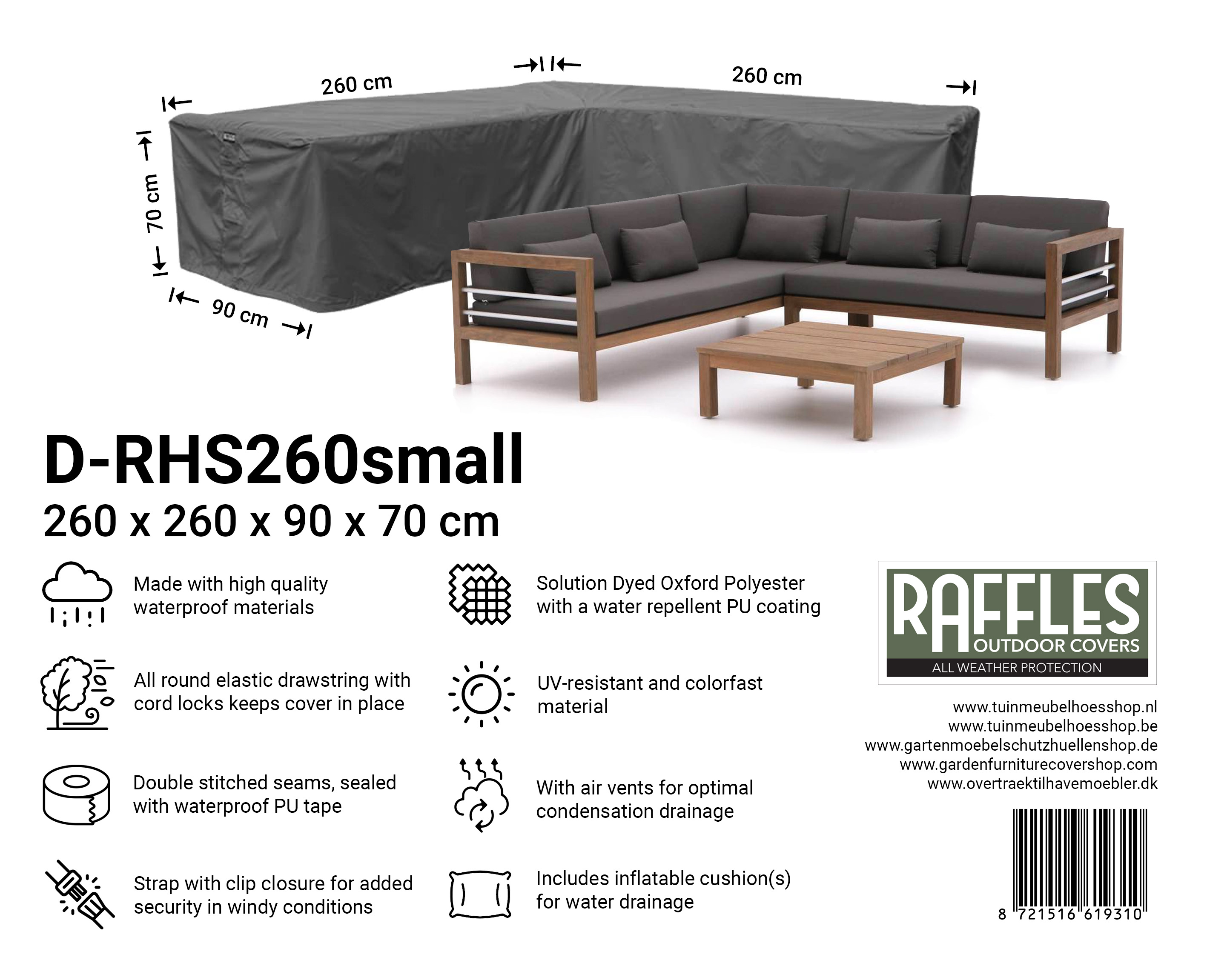 Spezifikationen der Raffles Covers RHS-Serie – Schutzhüllen für Lounge-Ecksofas