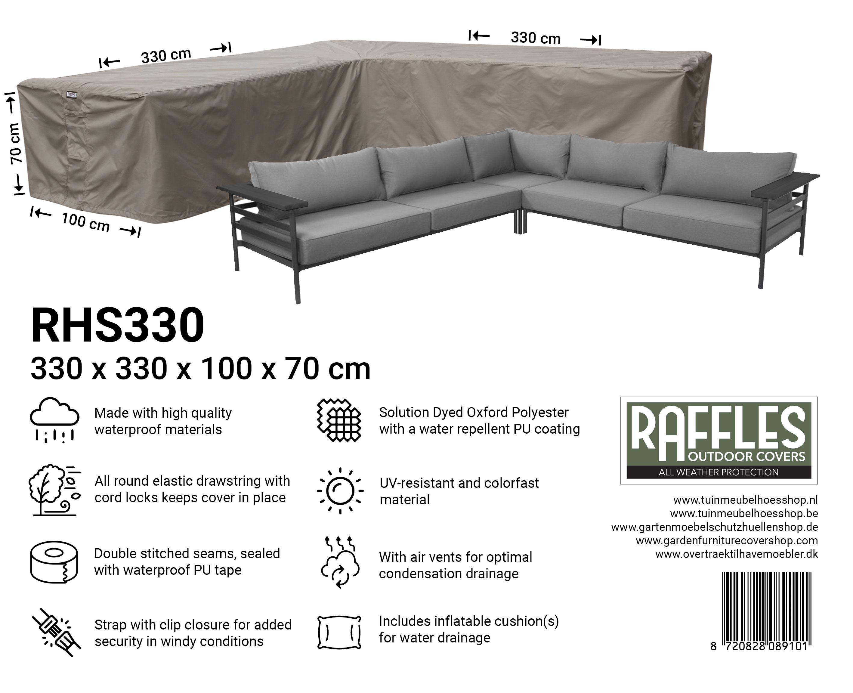 Spezifikationen der Raffles Covers RHS-Serie – Schutzhüllen für Lounge-Ecksofas